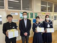 今年度、生徒会で取り組んできた「プルタブ・キャップ集め」や「資源回収」の売上金をもとに、緑町デイサービス様へ「リハビリ用平行棒」を贈呈しました。また、生徒お手製の「エコバッグ」もプレゼントしております。