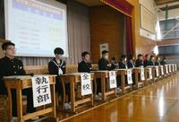 5月10日、今年度の生徒総会が行われました。各専門部から令和6年度の活動方針が示されました。一般生徒からは多くの質問や意見が出されました。